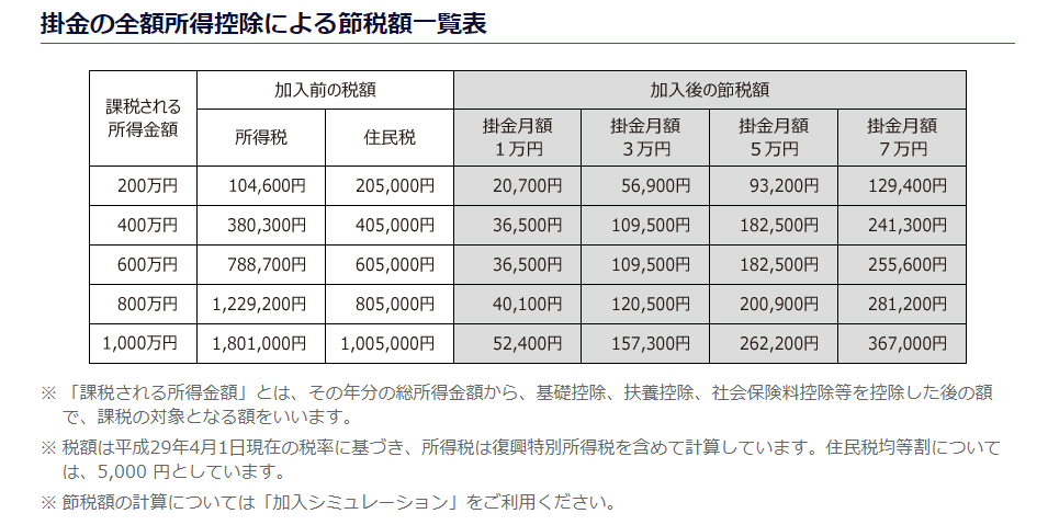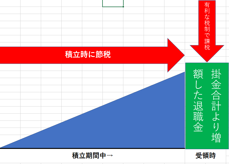 毎年の税金を安くしつつ退職金を積立、退職金を貰うときも優遇された税金で受け取れるという非常に優れた制度です。