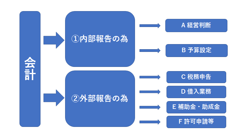 ポイント:会計は内部で使う場合と、外部に提出する目的で使う場合の2種類に分類されます。