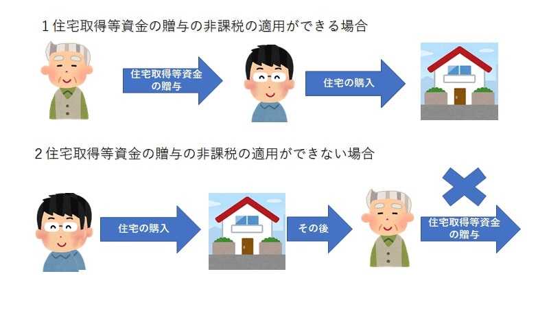 この特例の適用を受けるには直系尊属から住宅を取得するための資金の贈与を受け、そして、住宅の購入をすることが要件です。